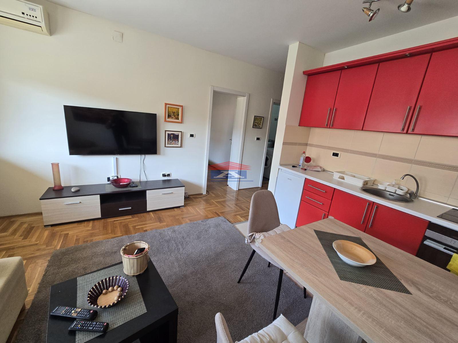 IZDAJE SE LEPO NAMESTEN, UREDAN DVOSOBAN STAN SA PARKINGOM U DVORISTU. KUHINJA FIZICKI ODVOJENA SA PRIRODNOM VENTILACIJOM, DNEVNI BORAVAK, HODNIK, SPA