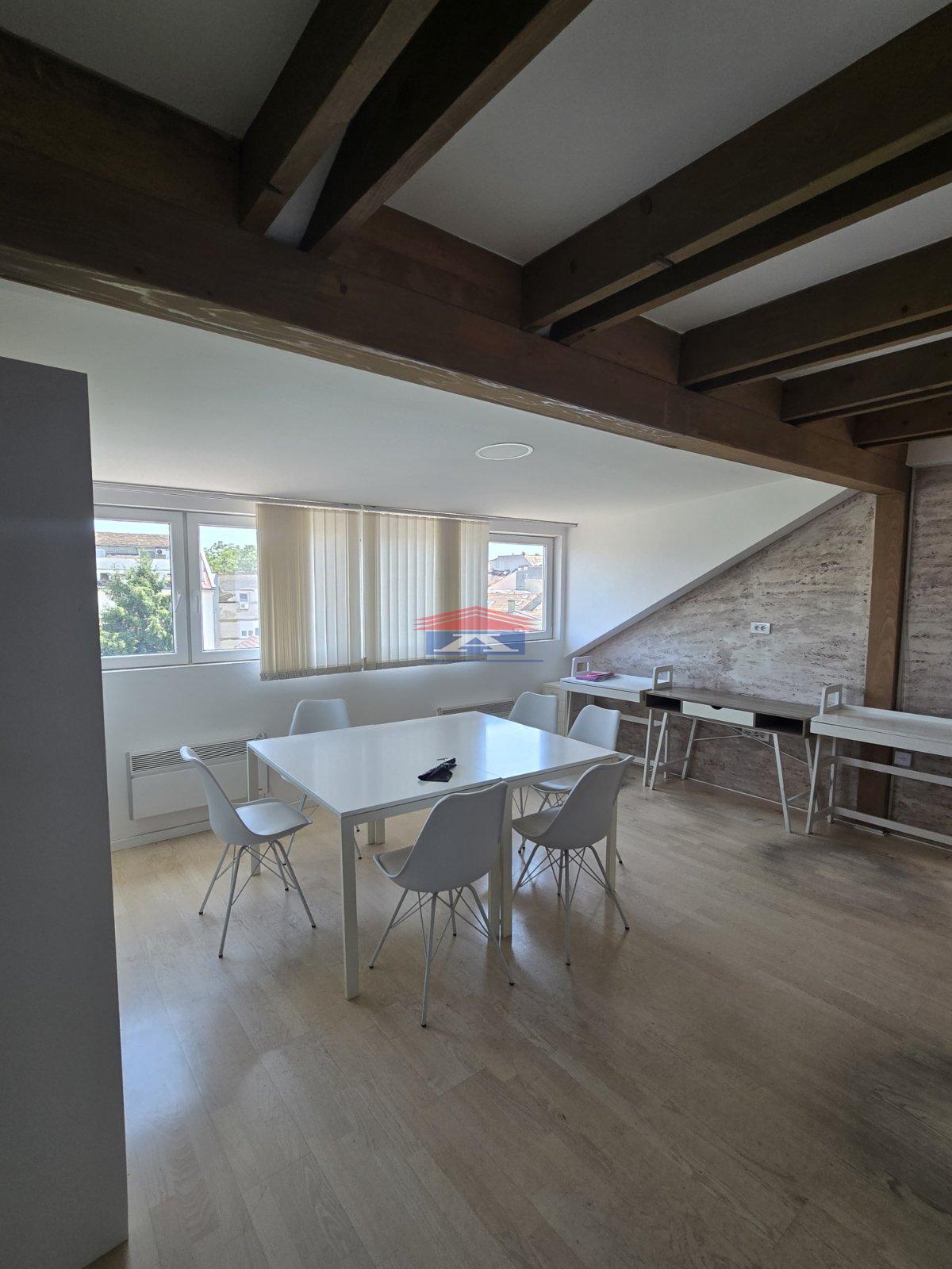 Izdaje se dvoiposoba stan za poslovni prostor u centru Novog Sada, ulica Matice srpske. Prostor se izdaje za tihe delatnosti, idealno za kancelarije, škole jezika, it sektor... Grejanje na struju, na norveške radijatore (u najhladnijim mesecima računi oko 7-8000 rsd). Nameštaj koji se nalazi u prostoru je moguće izneti, u dogovoru sa vlasnikom.