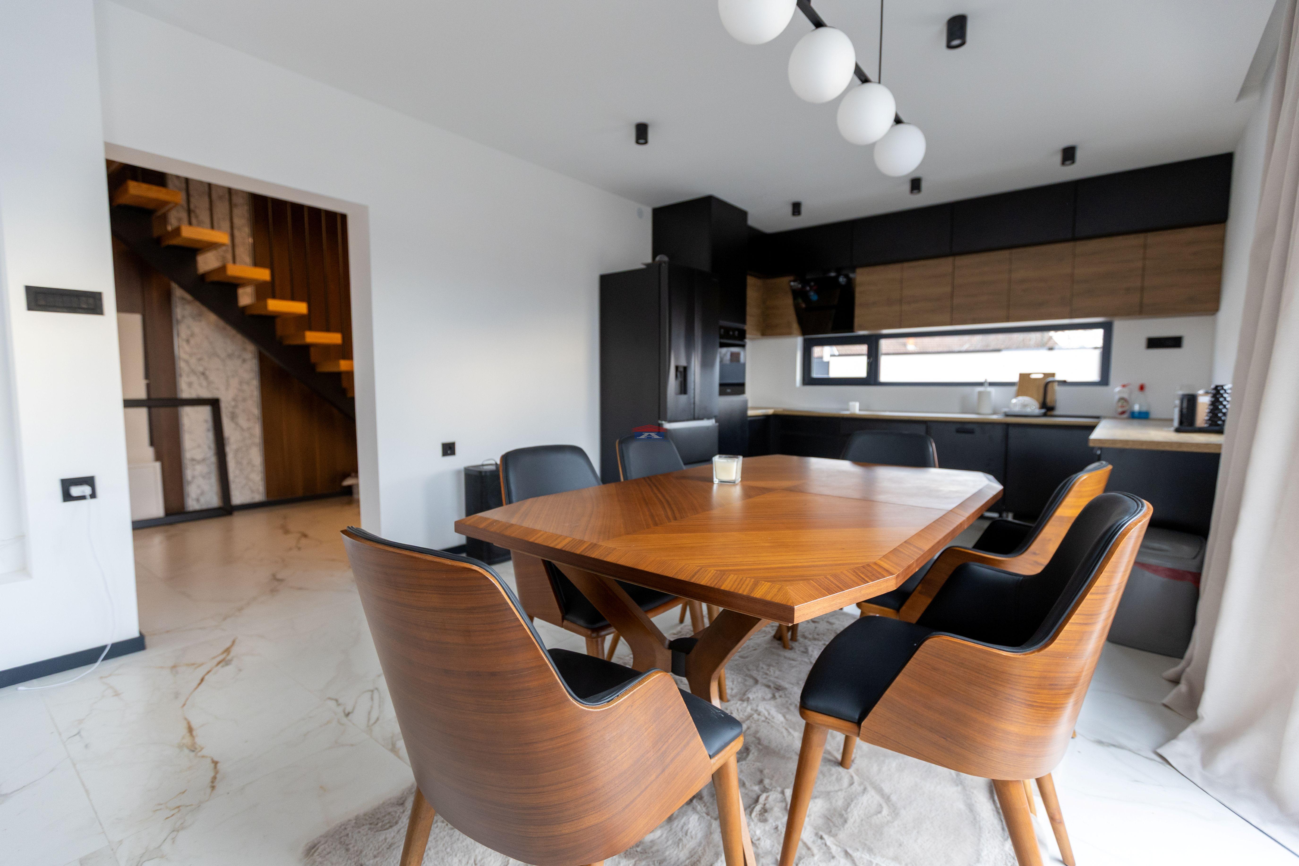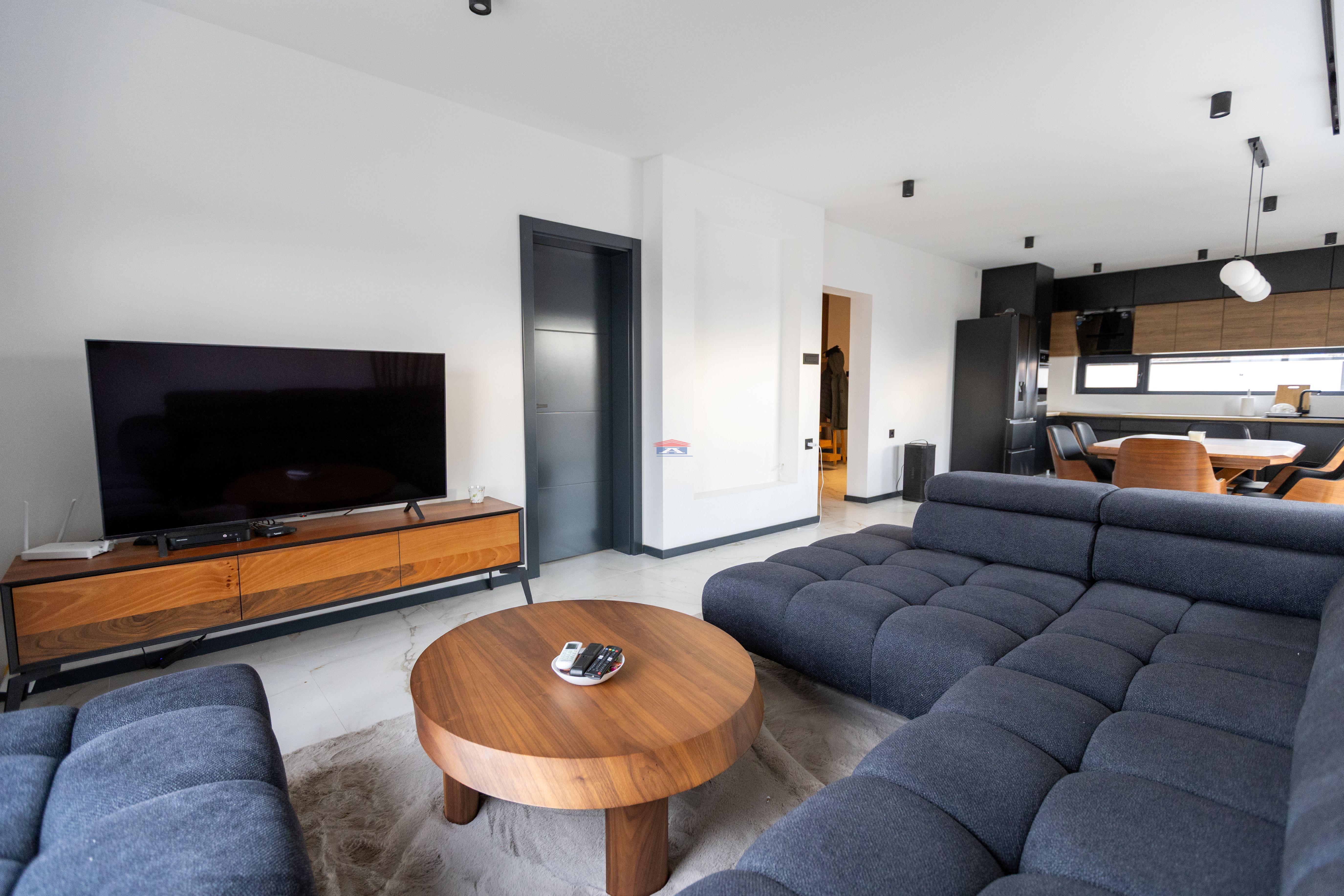 Na prodaju nova montažna kuća u Veterniku - potpuno sređena, useljiva odmah. Ako tražite nov, moderan i fukcionalan dom bez ikakvih ulaganja, ovo je prava prilika. Kuća je kompletno završena i pažljivo uređena, u lepom i mirnom delu Veternika. Projektovana je tako da pruža maksimalnu udobnost i praktičnost za porodičan život. Sastoji se u donjem delu iz prostrane dnevne sobe sa kuhinjom i trpezarijom. Prostor je veoma svetao i ima izlazak na veliku terasu na koju se nastavlja dvorište. U prizemlju se još nalaze spavaća soba, kupatilo i hodnik. Modernim stepenicama povezano je sa spratom kuće gde se nalaze tri spavaće sobe kupatilo i terase. Svaka soba ima izlaz na terasu. U kući je podno grejanje na toplotne pumpe.